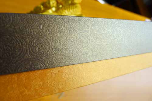 所采用的部分工藝及材料:裝幀布裱10mm30度海綿,樹脂,255g素面鐳射銀裱5mm中纖板(單面過亞膠,UV,擊凸),255g素面銀印4色面貼板,單面過亞膠裱1600g灰板擊凸,75mm長黃繩。